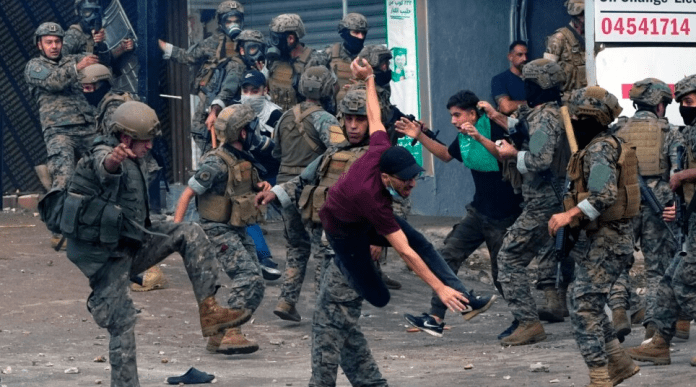 Policia është përleshur me protestuesit të mërkurën gjatë demonstratave në Liban kundër sulmeve ajrore izraelite në Rripin e Gazës dhe kundër një shpërthimi vdekjeprurës në një spital atje, ku besohet se u vranë qindra njerëz.