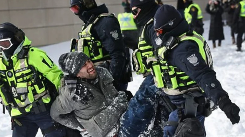 Policia u përplas me protestuesit në kryeqytetin e Kanadasë, Ottawa, teksa po përpiqej t’i jepte fund protestës trejavore kundër vaksinimit, ku u arrestuan 100 persona.
