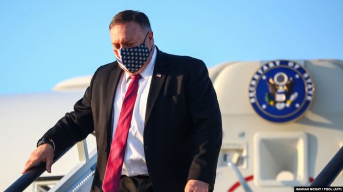 Pompeo, i veshur me një maskë për fytyrën me ngjyrat e flamurit të SHBA-së, pritet të takohet me kryeministrin izraelit, Benjamin Netanyahu dhe në ditët në vijim do të vizitojë gjithashtu Sudanin, Bahrejnin dhe Emiratet e Bashkuara Arabe, tha Departamenti i Shtetit.