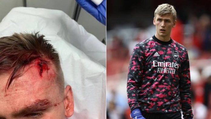 Portieri Runar Alex Runarsson u larguar nga fusha dhe u dërgua në spital, pas një përplasjeje me një sulmues të Club Brugge, i cili e la atë me një plagë të thellë në kokë.
