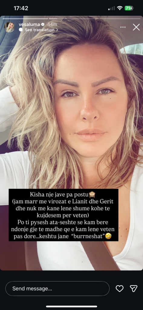 Me nota humori, Vesa e ka mbyllur postimin duke iu referuar vetes si një “burrneshë”, duke marrë menjëherë reagime pozitive nga ndjekësit.