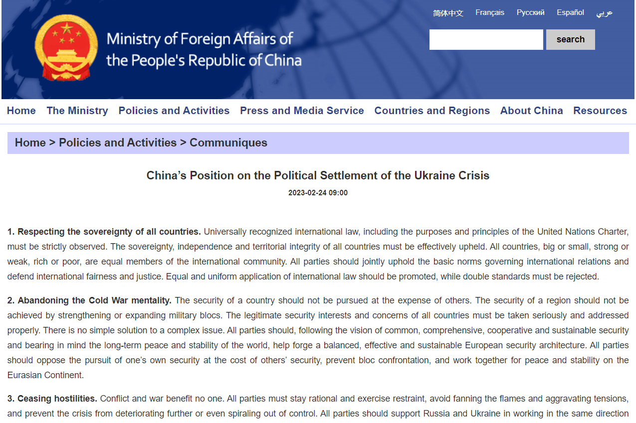 Pozicioni i Kinës për zgjidhjen politike të krizës së Ukrainës