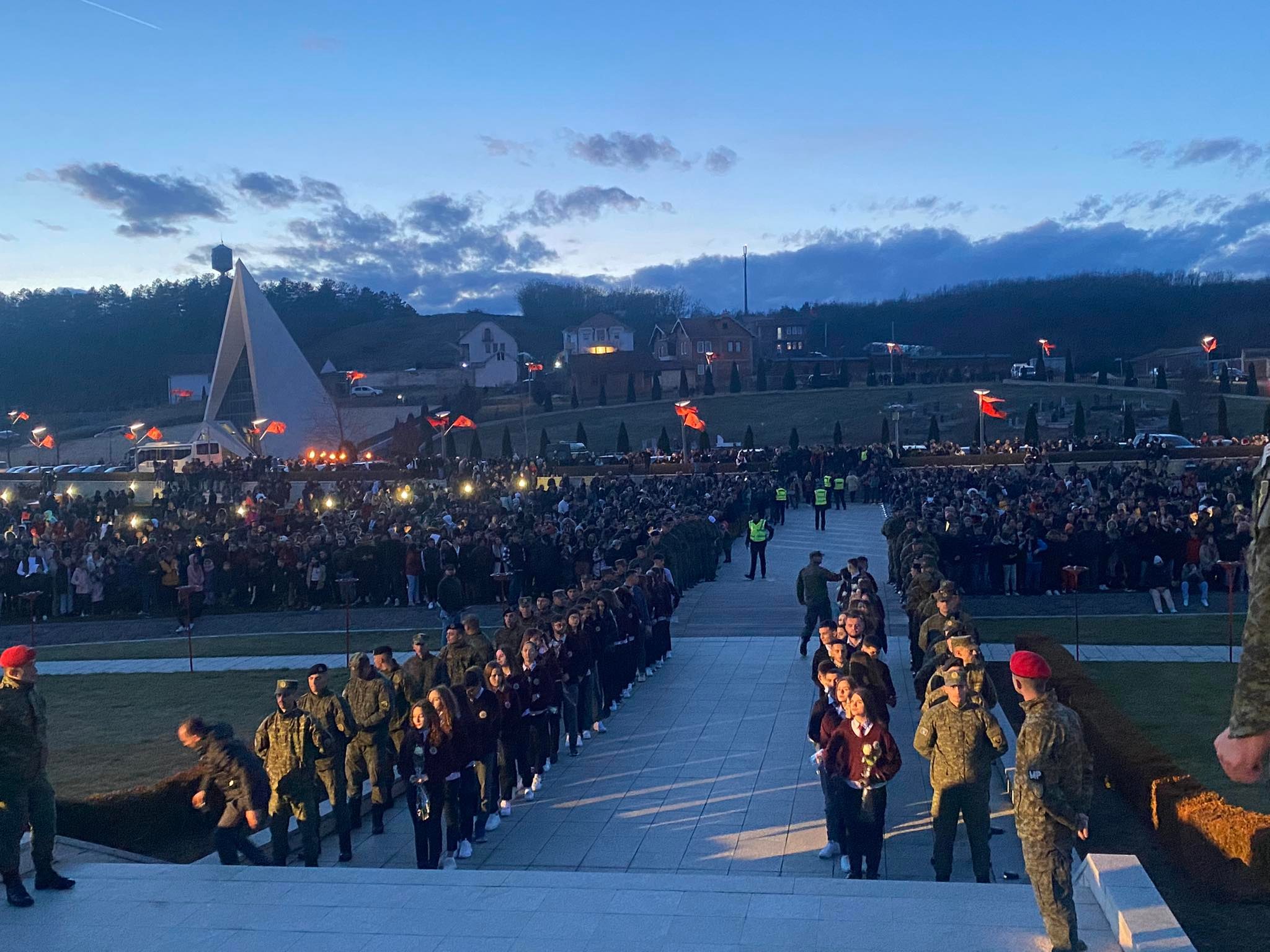 Aty po marrin pjesë qytetarë të shumtë, aktorë politikë e anëtarë të familjes Jashari.
