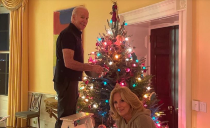 Biden ka shpërndarë në Twitter një foto familjare nga momenti kur ndihmon të zonjën e Shtëpisë së Bradhë, Jill Biden, në përpilimet e fundit për dekorimin e bredhit të Krishtlindjes.