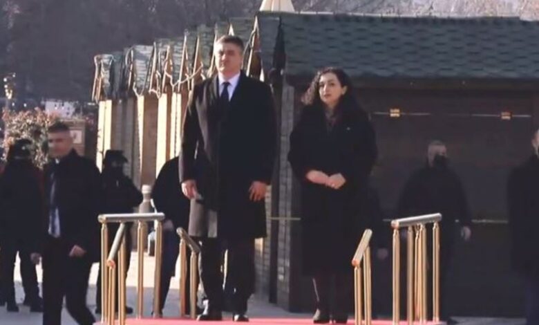 Presidentja e Kosovës, Vjosa Osmani, e ka pritur me ceremoni shtetërore, homologun e tij kroat, Zoran Milanoviq.