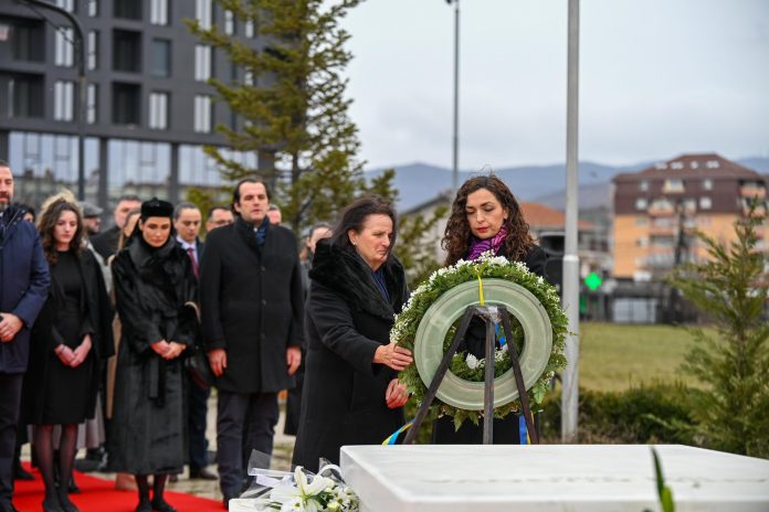 Presidentja Osmani bën homazhe te varri i Ibrahim Rugovës January 21, 2026 Share Facebook Twitter Pinterest WhatsApp Linkedin ReddIt Email Print Telegram VK LINE Viber Janë bërë 20 vjet nga vdekja e ish-presidentit të Kosovës Ibrahim Rugova. Në nderim të tij, homazhe ka bërë presidentja Vjosa Osmani. Ajo ka vendosur kurora lulesh te varri i Rugovës, njofton Klankosova.tv.