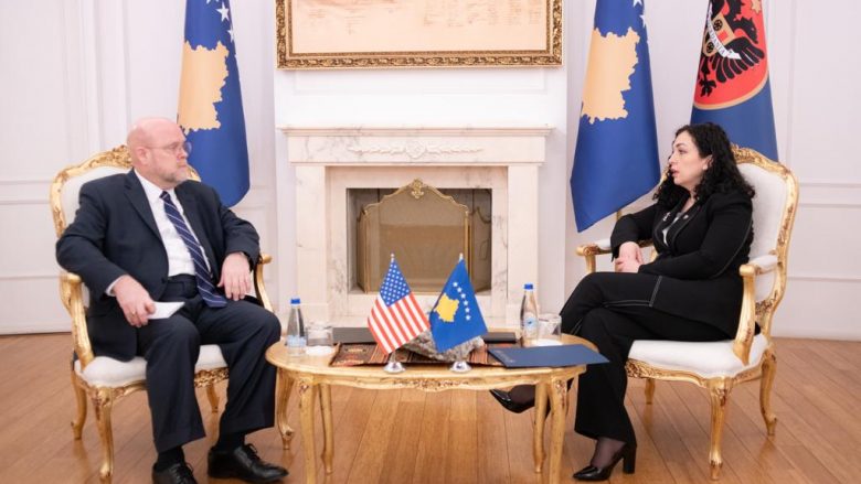 Presidentja e Kosovës, Vjosa Osmani sot ka pritur në takim të rregullt ambasadorin amerikan Jeffrey Hovenier, me të cilin bisedoi për zhvillimet e fundit në vend dhe rajon, si dhe thellimin e bashkëpunimit në mes Kosovës dhe Shteteve të Bashkuara të Amerikës në fushën e sigurisë.