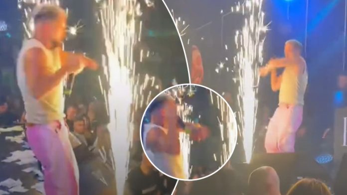 Pritje e ekzagjeruar për Gjestin në koncertin e parë pas daljes, fituesi i BBVA për pak sa nuk digjet nga fishekzjarret në skenë
