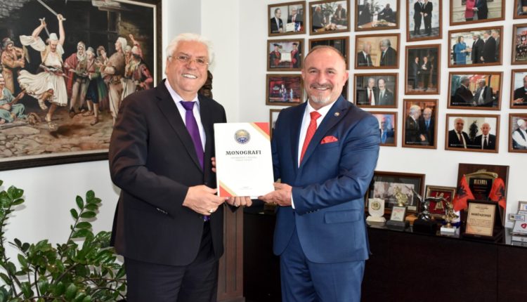 Për këtë qëllim, sot u realizua takimi mes Prorektorit për Arsim të UT-së dhe pronarit të Kompanisë Ecolog. “Ne i jemi mirënjohës kompanisë që Ju e drejtoni për mbështetjen që i ka dhënë universitetit tonë ndër vite, zhvillimit ekonomik dhe përkrahjen e pakushtëzuar ndaj institucioneve shqiptare kudo në rajon. Universiteti ynë tashmë i konsoliduar ka bërë hapa të mëdhenj përpara, si në avancimin mësimor – shkencor dhe projekte të tjera me rëndësi jetike. Sikurse jeni në dijeni, ne në përvjetorin e ligjëratave të para, pas një pune të jashtëzakonshme të ekipit kompetent, arritëm që ta botojmë Monografinë e Universitetit të Tetovës, që përfshinë periudhën “1994/5-2004/5”, ndaj më lejoni që në emër të ekipit botues, profesorëve dhe studentëve të të gjitha gjeneratave t’ua dhuroj Monografinë që ne e konsiderojmë si publikimin më të rëndësishëm të Universitetit tonë”, tha Prof. Dr. Vullnet Ameti.