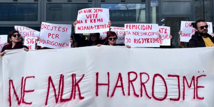 Pjesëtarë të Kolektivit për Mendim dhe Veprim Feminist kanë protestuar të mërkurën para Pallatit të Drejtësisë në Prishtinë kundër vendimit të Gjykatës së Apelit, për të dërguar në rigjykim lëndën e vrasjes së Marigona Osmanit.