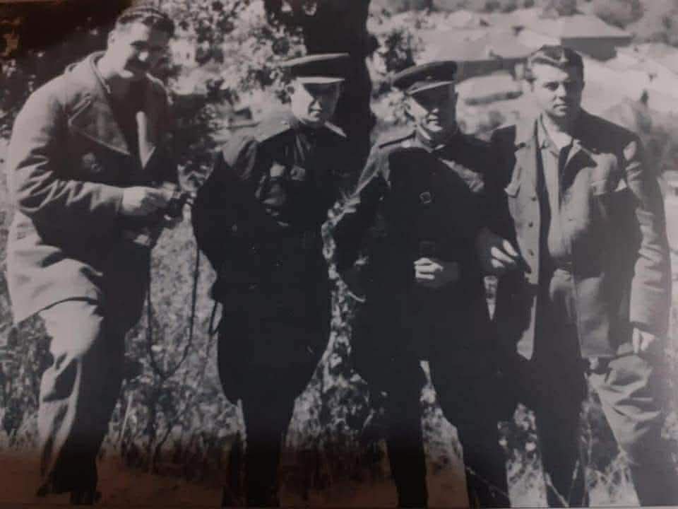 Foto: Miladin Popoviç, togeri sovjetik Stepan Sokolov, majori sovjetik Ilia lvanov dhe Enver Hoxha.