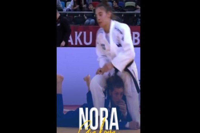 “Momenti i fitores së Nora Gjakovës🇽🇰 ndaj serbes Perishiq për të avancuar në gjysmëfinale të Grand Slamit të xhudos. Nora u kualifikua më pas në finale. Forca tutje kampione“, thuhet në njoftim.