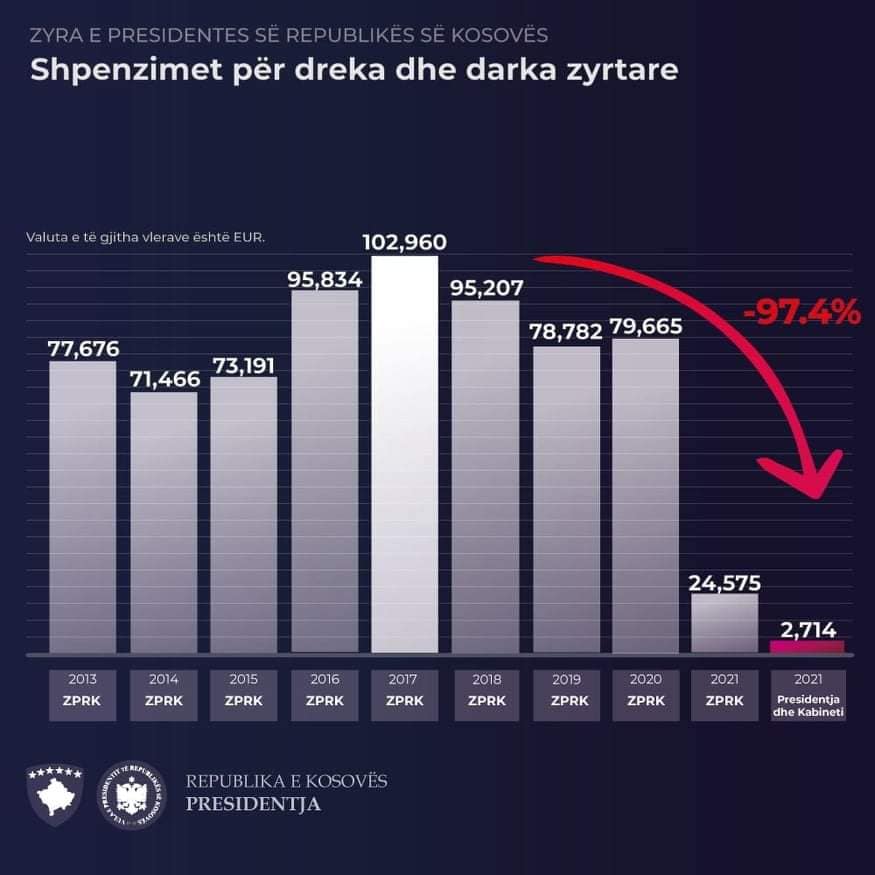 Këshilltari për media i presidentes, Bekim Kupina, tha se racionalizimi i shpenzimeve është parimi kryesor që e ka ndjekur presidentja Osmani që nga dita e parë, fillimisht në Kuvendin e Kosovës e më pas në Presidencë.