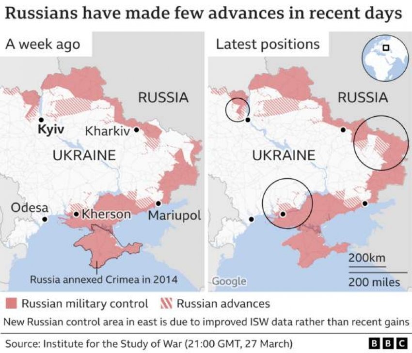 Forcat ruse po rigrupohen, por ato nuk janë në gjendje të përparojnë askund në Ukrainë.