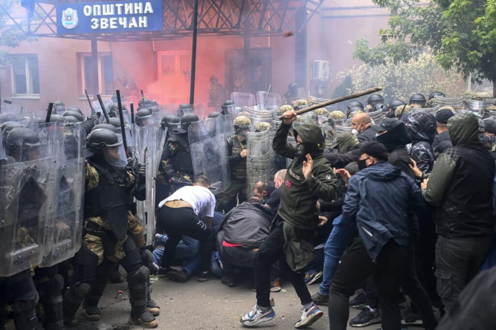 ”Rasti është shumë i thjeshtë. Bashkimi Evropian i ka vendosur masa Kosovës sepse e ka fajësuar atë, padrejtësisht, për eskalimin e situatës që shihet në foton e parë (maj 2023).