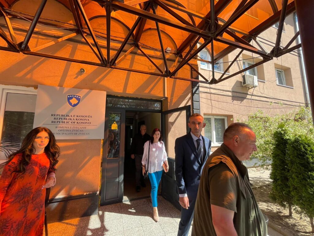 Ndërkaq, në foton e dytë, mund të shihet Kryetari i Komunës së Zveçanit, Ilir Peci, pranë të njëjtës ndërtesë duke lëvizur i papenguar (prill 2024).