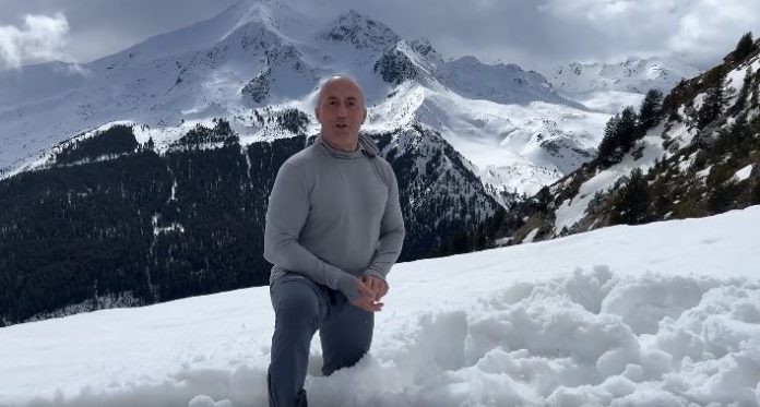 Ai ndau një video ku shihet duke e shijuar pamjen mahnitëse të natyrës së kësaj bjeshke, e cila është e mbuluar e tëra me borë.