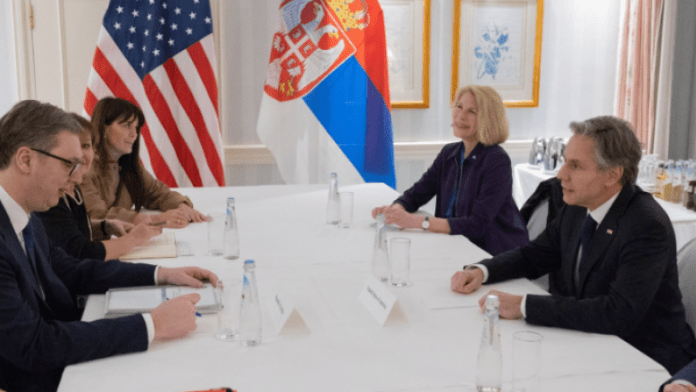 Sekretari amerikan i Shtetit, Antony Blinken dhe presidenti serb, Aleksandar Vuçiq janë takuar në Konferencën e Sigurisë në Munich.