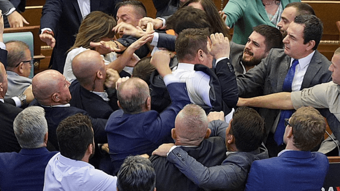 Kuvendi i Kosovës u shndërrua të enjten në një vend përleshjesh fizike, mes deputeteve të Partisë Demokratike të Kosovës (PDK) dhe anëtarëve të Qeverisë së Kosovës, që drejtohet nga Albin Kurti.