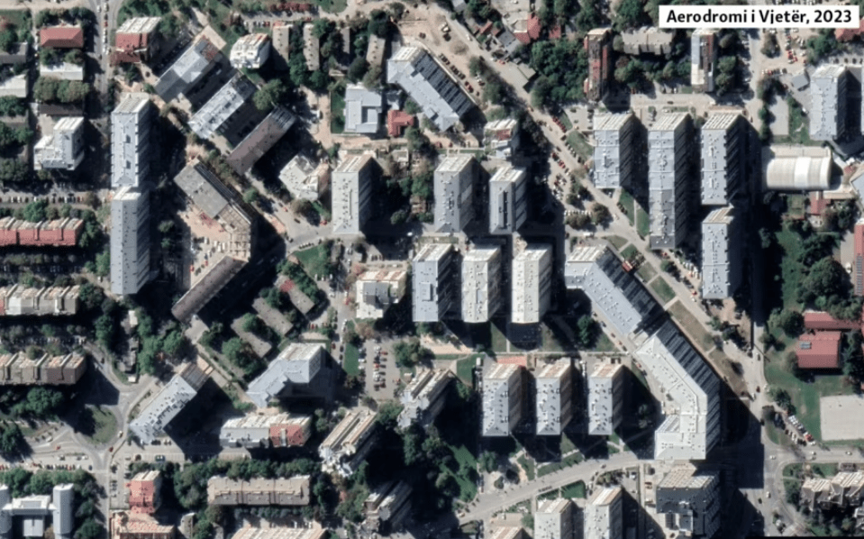 10Gazi Baba është i vetmi vendbanim në Shkup që ka pyll. Por, edhe atje, pamja nga lart shfaq se ideja e urbanizimit dhe betonimit nuk e ka kursyer as atë. Zonat e gjelbra po tkurren, në dëm të ndërtesave.