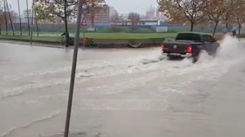 Sikurse shihet edhe nga pamjet rrugët janë të përmbytura totalisht ndërsa qytetarët e kanë thuajse të pamundur të kalojnë nga njëra anë e rrugës në tjetrën, nëse nuk do jenë të pajisur me çizme kundër ujit.