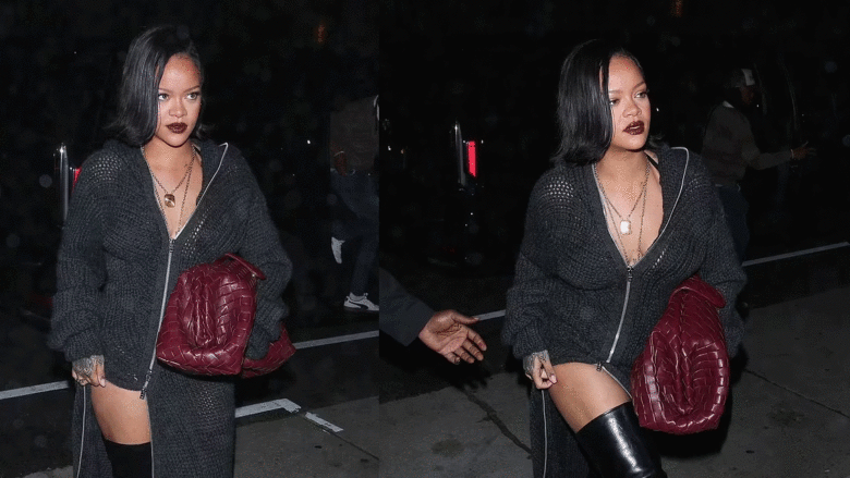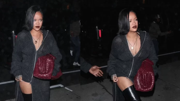 Dhe Rihanna nuk bëri përjashtim teksa doli për darkë në Los Angeles, me një fustan të thurur dhe çizme lëkure deri në kofshë.