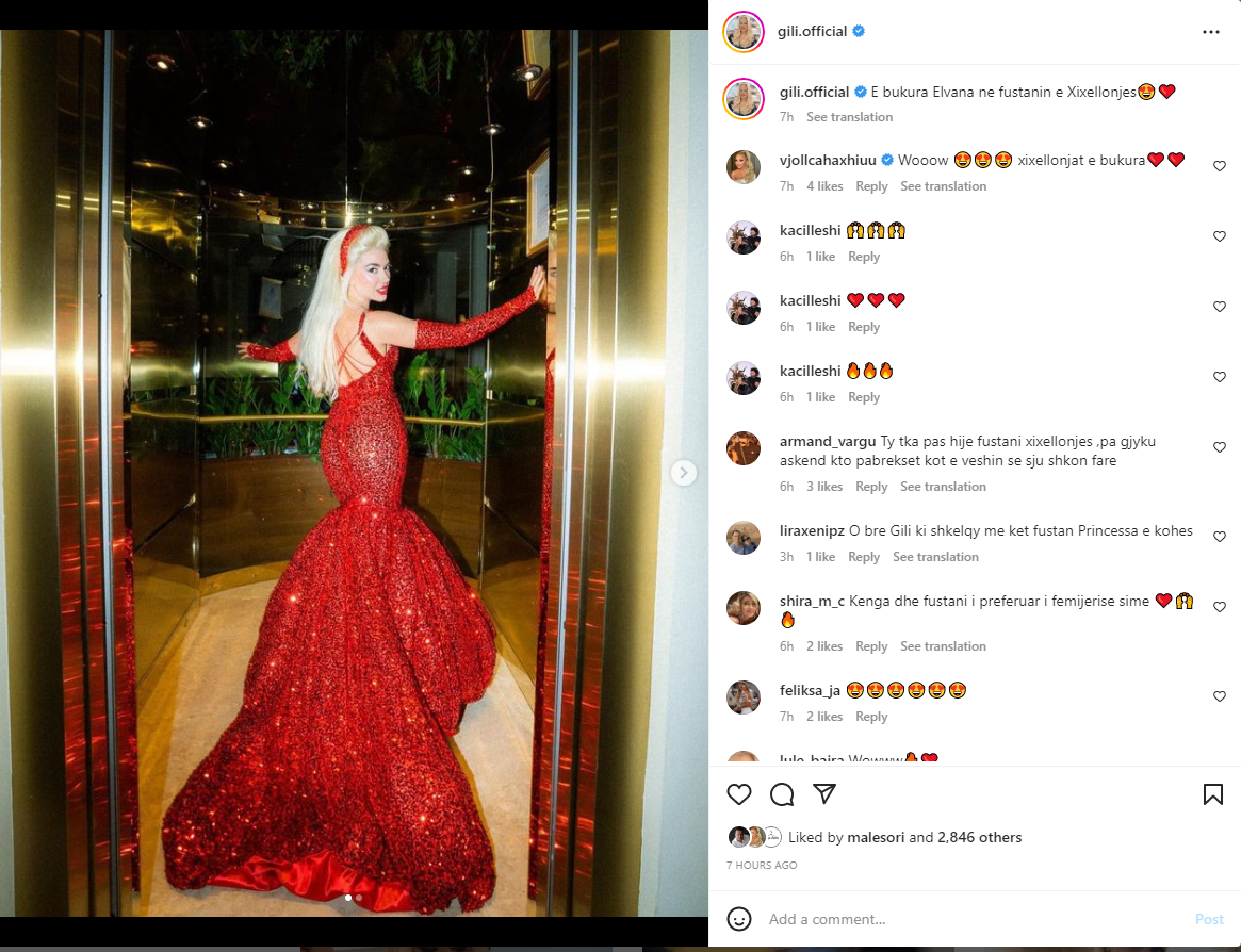 Teksa ka ndarë disa foto dhe video të Elvanës, Gili ka shkruar: E bukura Elvanë në fustanin e xixëllonjës./Lajmi.net/