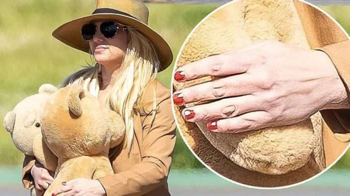 Këngëtarja, 41-vjeçare, e cila kishte shijuar një arratisje në një vend tropikal, ishte e ngarkuar me një çantë portokalli dhe dy lodra, por në duart e saj mungonte sërish unaza e martesës.
