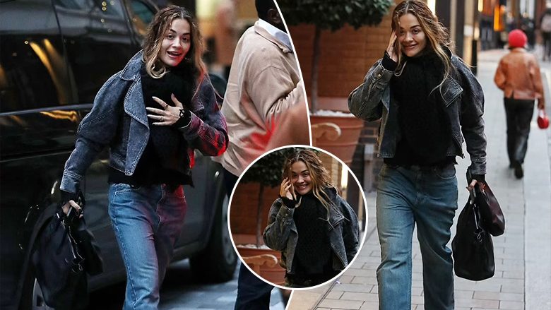 Këngëtarja Rita Ora, 33 vjeçe, shfaqi një buzëqeshje të ngrohtë teksa mbërriti në Hotelin “Ham Yard” në Sohon e Londrës e veshur me xhinse të mërkurën.