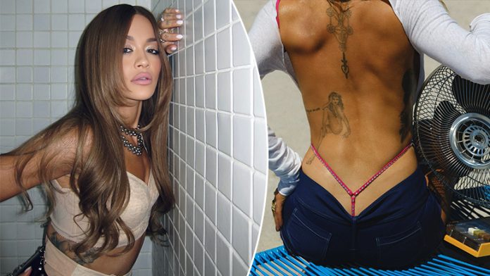 Në imazhin e ndarë në llogarinë e saj zyrtare në Instagram, ku ajo ka vendosur thjesht mbishkrimin “Heat”, Rita shihet duke pozuar me shpinën e zhveshur, teksa ekspozon në mënyrë të theksuar disa nga tatuazhet e saj më të njohura.
