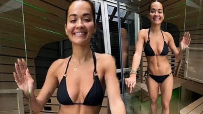 Rita Ora shfaq linjat e mahnitshme të trupit në bikini të zeza, ndërsa shijon një seancë saune me rreze infra të kuqe në Zelandën e Re