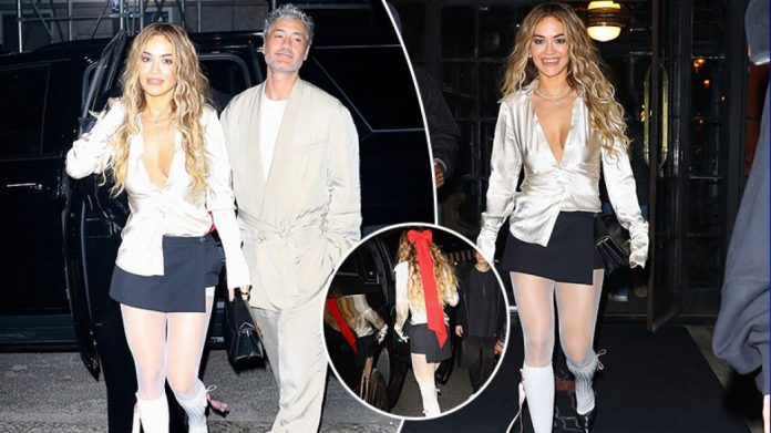 Rita dukej në humor të mirë teksa buzëqeshi kur po shoqërohej nga burri i saj, regjisori Taika.