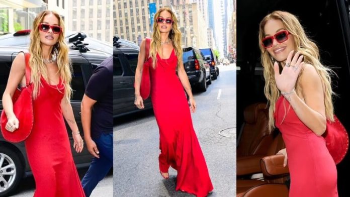 Rita Ora mahniti me tre ansamble të kuqe, teksa po dilte në New York, për të promovuar filmin e saj të ardhshëm: Descendants: Rise Of The Red.