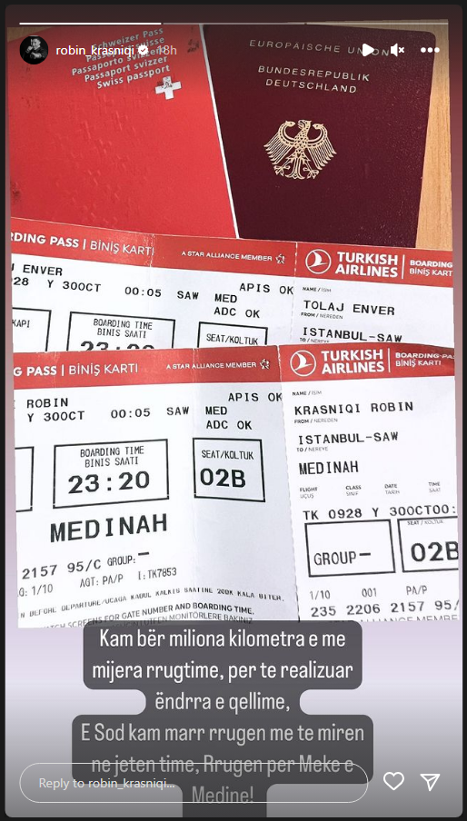 Por, natën e mbrëmshme ai bëri të ditur se do të marr rrugën në Mekë e Medinë.