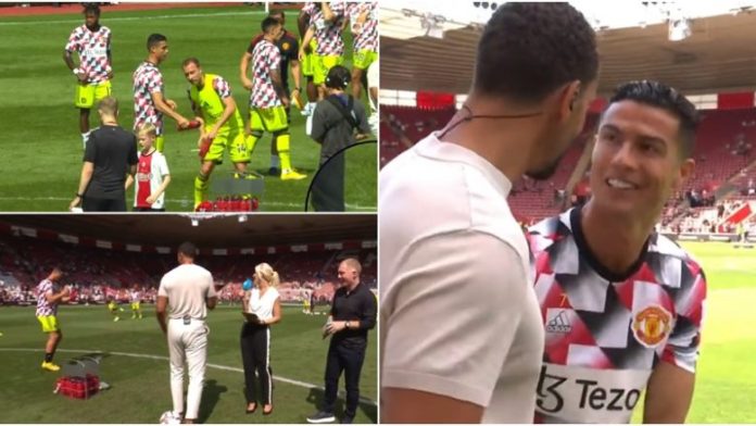 Sulmuesi portugez ishte ofruar për t’i përshëndetur Roy Keane e Gary Neville, por e injoroi keq ish-kapitenin e Liverpoolit, Jamie Carragher.E gjitha u filmua drejtpërdrejtë nga Sky Sports, derisa tani në sfidën me Southampton, Cristiano Ronaldo ka vendosur që të bëj shaka me një ish-bashkëlojtar të tij.