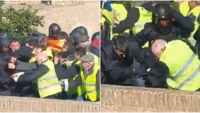 Qindra fermerë protestues u përleshën me policinë në qytetin spanjoll të Zaragoza teksa u përpoqën të futeshin në Pallatin La Aljafería, ku po zhvillohej një mbledhje e qeverisë.