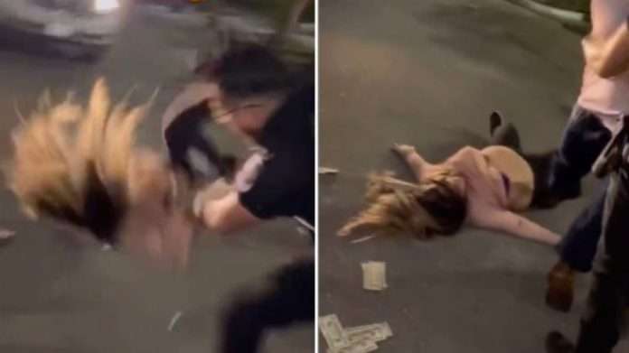 Në një video shqetësuese që është parë mbi dhjetë milionë herë në internet, disa gra mund të shihen duke u grindur ndërsa një oficer sigurie i spërkat me sprej dhe i godet ato jashtë një klubi nate në Teksas.