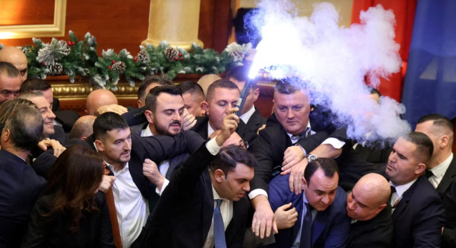 Deputetët e opozitës u përleshën me policinë brenda sallës së Kuvendit të Shqipërisë të enjten, pas tensioneve disajavore lidhur me akuzat për korrupsion ndaj zëvendëskryeministres, Belinda Balluku dhe zyrtarëve të tjerë.