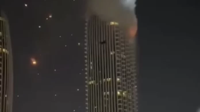 Një ndërtesë në qendër të Dubait u godit nga rrënojat e një sulmi të ndërprerë, duke shkaktuar dëme të vogla.