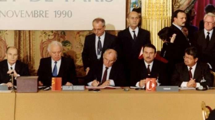 Traktati i vitit 1990, i negociuar dhe i përfunduar në fund të Luftës së Ftohtë dhe i nënshkruar një vit pas rënies së Murit të Berlinit, vendosi kufizime në vendosjen e pajisjeve ushtarake për të ruajtur ekuilibrin ushtarak midis NATO-s dhe vendeve të atëhershme të Paktit të Varshavës.