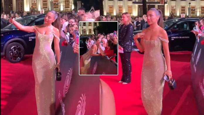 Sara ishte ndër të parat që arriti në premierë, teksa nuk hezitoi të bënte ‘selfie’ me admiruesit e saj.