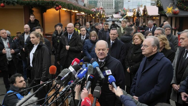 Kancelari gjerman, Olaf Scholz ka folur gjatë vizitës së vendit të ngjarjes – tregu i Krishtlindjeve në Magdeburg – ku mbetën të vdekur pesë persona dhe u lënduan qindra të tjerë pasi një veturë që lëvizte me shpejtësi të lartë, ka shkelur një numër të madh të qytetarëve.