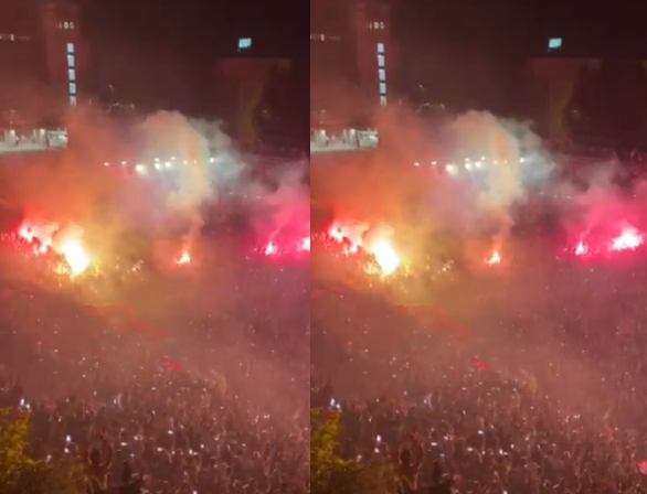 Këtë e dëshmojnë pamjet të cilat janë publikuar në rrjetin social twitter, nga pjesëmarrësit në këtë ngjarje ndërsa dëgjohen duke brohoritur e duke i kënduar kthimit në Kosovë, përcjell klankosova.tv.