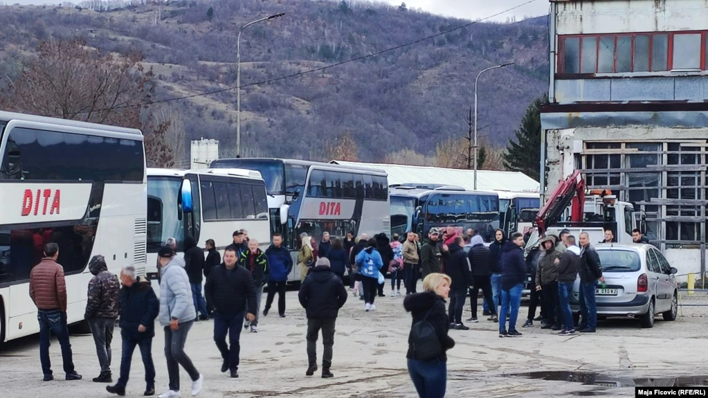 Më shumë se 25 autobusë u panë në stacionin e autobusëve në Mitrovicë të Veriut, për të transportuar serbët për të votuar në Rashkë.