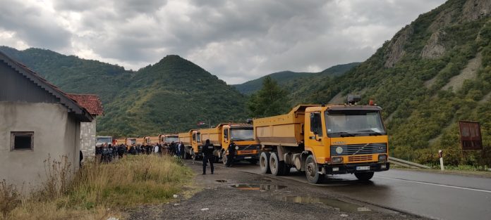 Protestuesit serbë kanë vendosur edhe drunj para një barrikade mbrëmjen e kaluar, në pikëkalimin kufitar në Bërnjak.