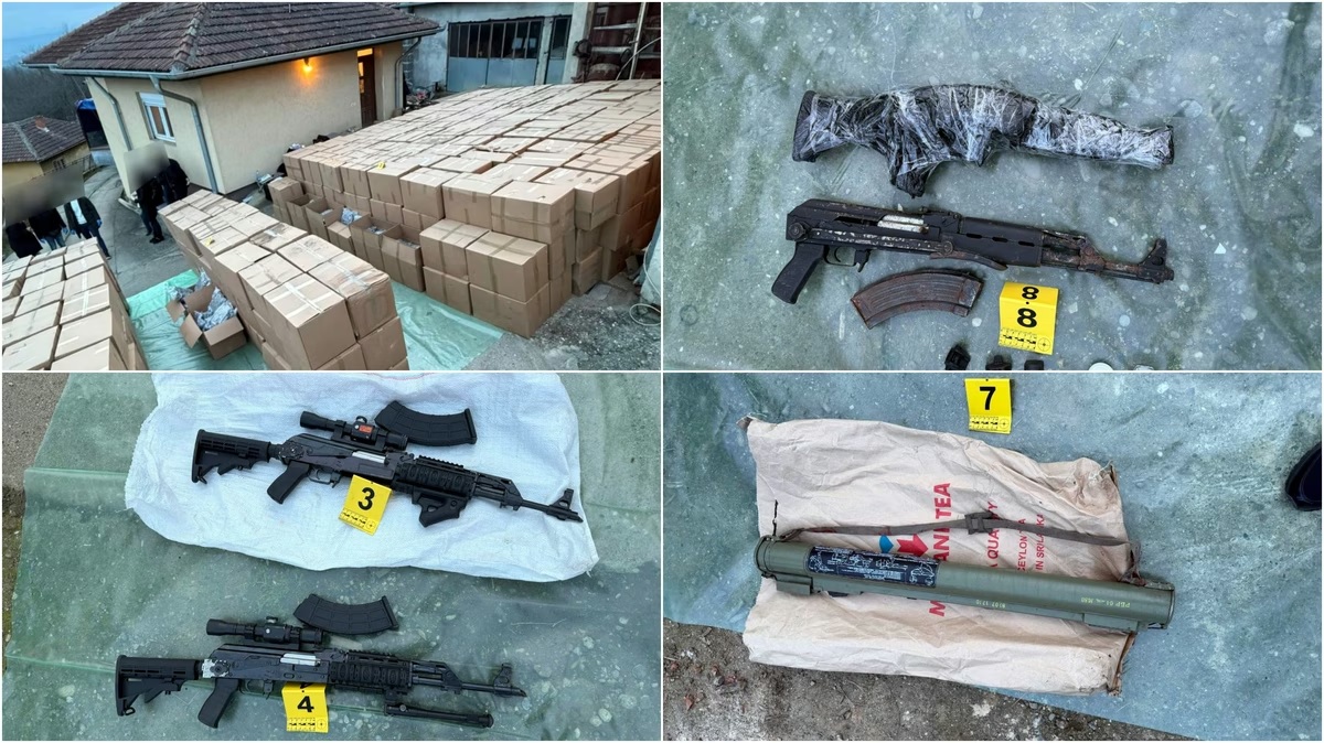 Ata thanë se, krahas drogës, janë gjetur edhe të paktën katër armë automatike, një raketahedhës dhe mbi 1.500.000 dinarë para të gatshme. Në vendin e ngjarjes janë arrestuar R.S. dhe N.S. (babë e bir), ndërsa në një adresë tjetër është prangosur edhe I.D., pjesë e të njëjtit grup kriminal.