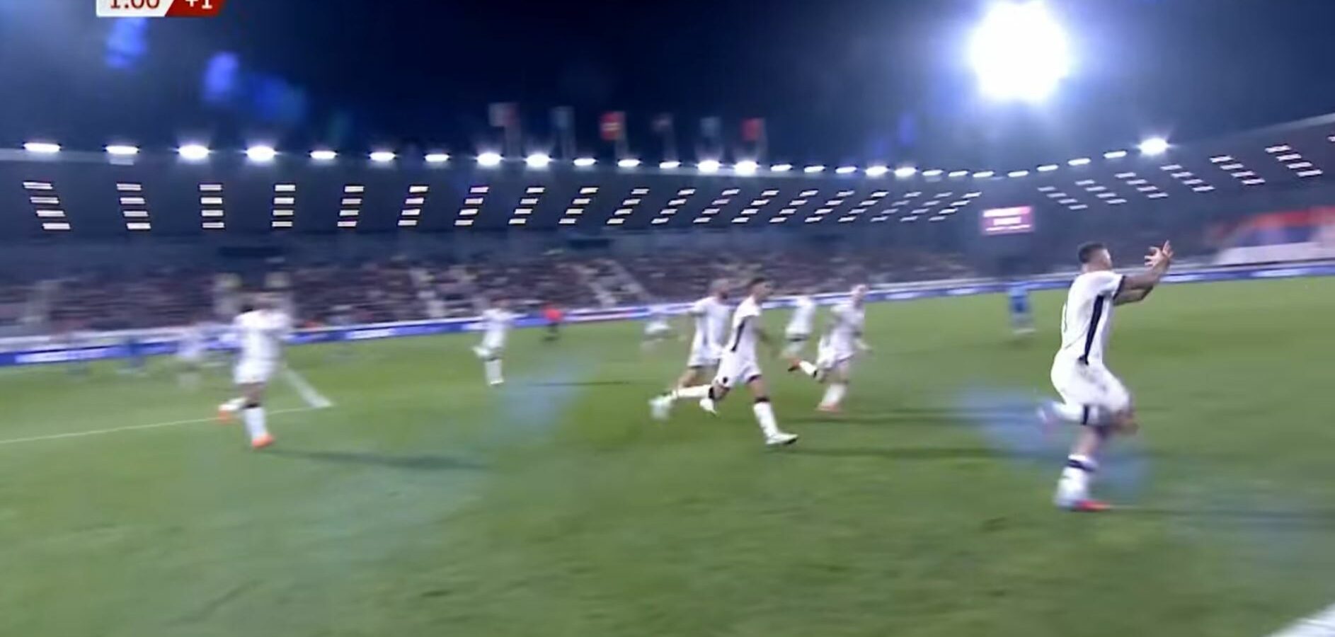 15’ Pas 15 minutash lojë, Shqipëria ka marrë pak më tepër lojën në kontrollë duke e qarkulluar topin, teksa në shkallët e stadiumit tifozët serbë po shfaqin racizëm duke kënduar këngë kundër Kosovës.
