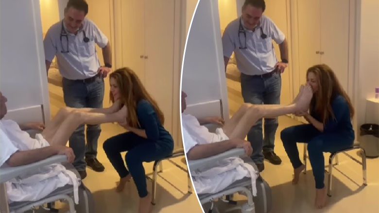 E lumtur për forcimin e babait, këngëtarja e hitit “Hips Don’t Lie” mund të shihet duke puthur këmbët e tij nga gëzimi.