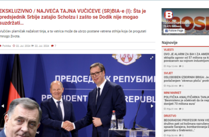 Një shkrim i portalit nga Sarajeva “Slobodna Bosna” për planet e supozuara të presidentit serb, Aleksandar Vuçiq, në rajon dhe kontrollin e dy portaleve kosovare nga pushteti i Vuçiqit, shkaktoi reagime të shumta nga gazetarët, Asociacioni i Gazetarëve të Kosovës, partitë opozitare dhe ekspertët e mediave.