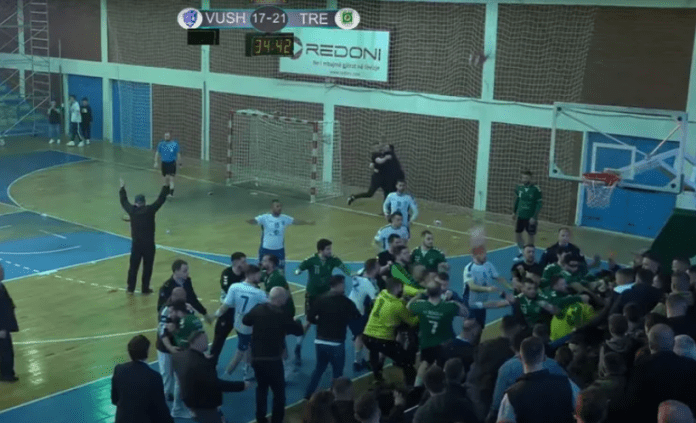 Është ndërprerë ndeshja e hendbollit mes Vushtrrisë dhe Trepçës. Në pjesën e dytë ka ardhur te një tollovi mes lojtarëve dhe ka nisur një përleshje. Më pas kanë hyrë tifozët vendas në fushë dhe kanë sulmuar lojtarët e Trepçës.